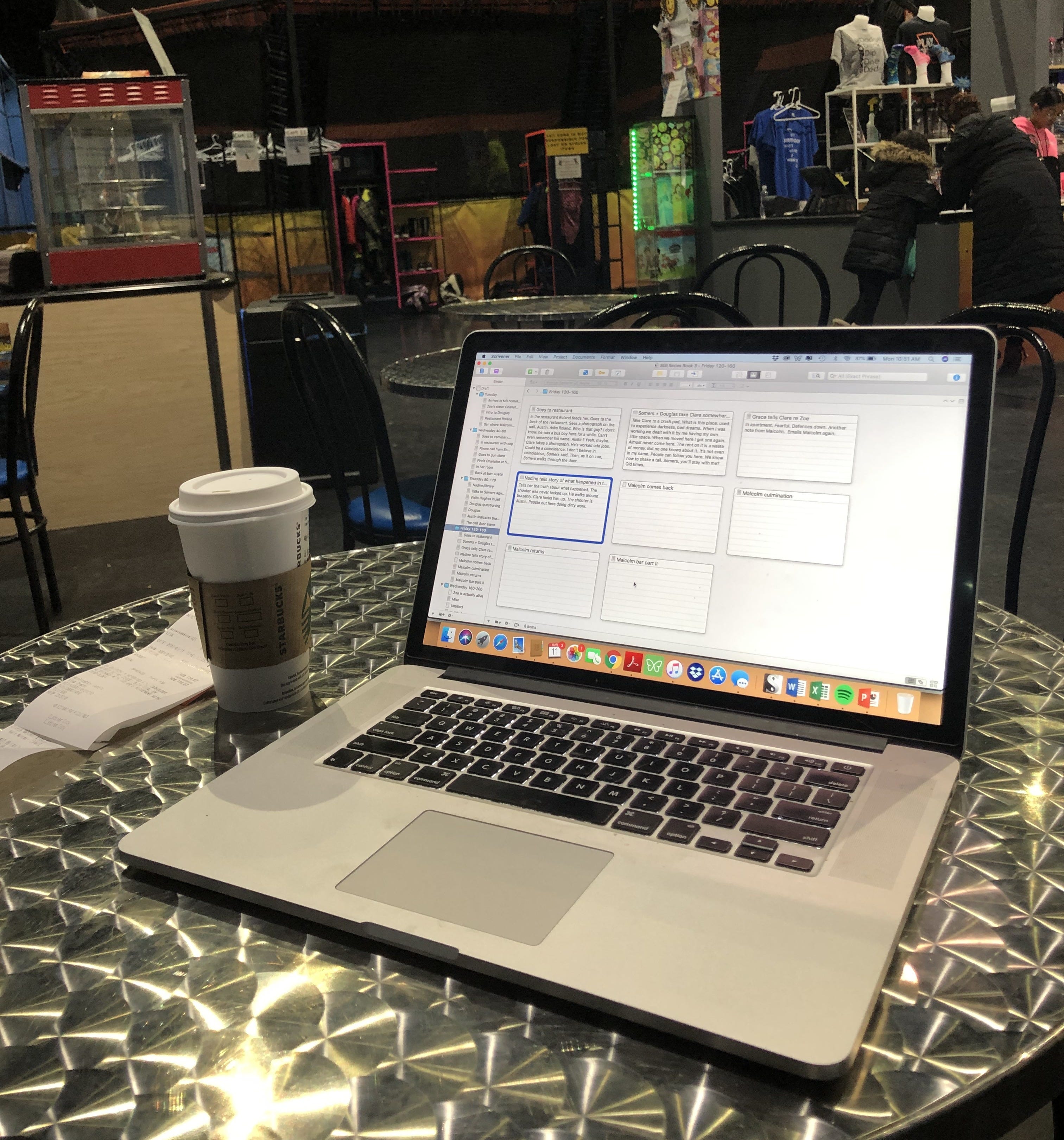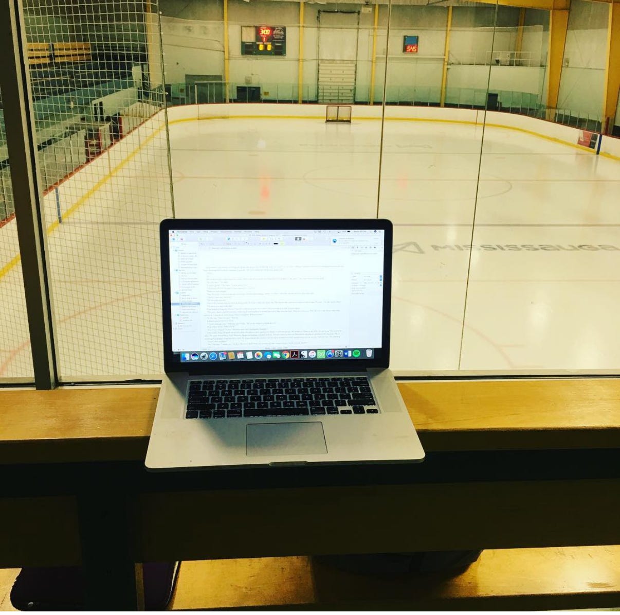 3 — In my desperation to meet an editing deadline on my second novel, my son’s locker room during a hockey practice. As horrific as it sounds. Upside: the warm stench made me hyper-focused on getting it done. And the door locked, not that anyone would disturb me there. Grade: D+.
